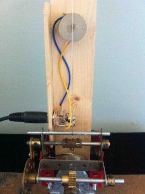 Frequency is a sound installation of two constructed single-string electric guitars with electric motors that tension and de-tension the strings very slowly. They are played with motorised spinning plectrums. Speakers to be positioned on opposite sides of the space. The 'instruments' at the front of the space. The work has a 19 minutes cycle. An installation of slowly shifting drone of harmonics dissonance and beatings.
